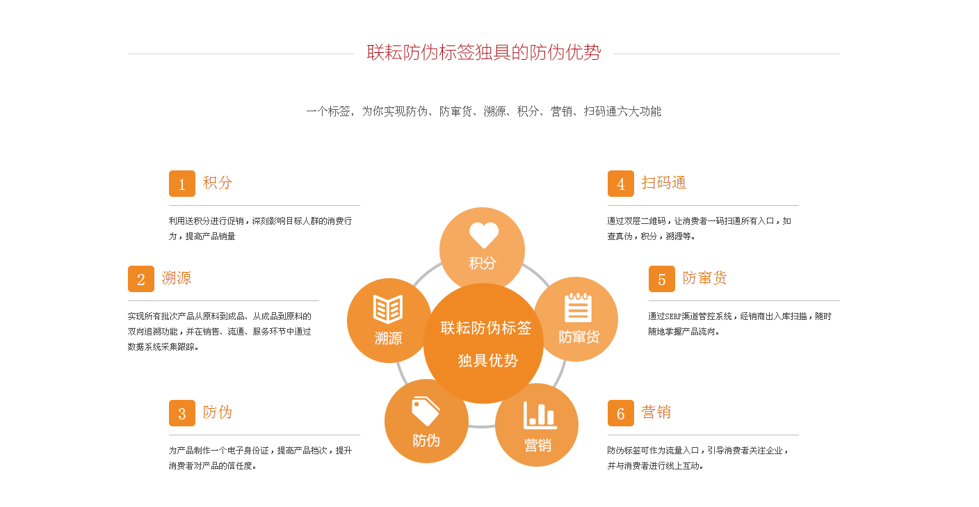 聯(lián)耘防偽利用在電子防偽領域的建設和運營經(jīng)驗,開發(fā)了“二維碼防偽查詢”系統(tǒng),它的原理就是,每件產(chǎn)品一個碼。、、、